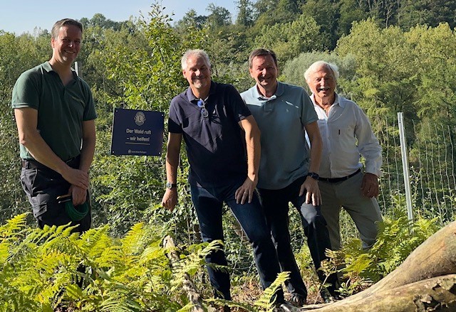 Dem deutschen Wald geht es nicht gut. Durch Dürreperioden des Klimawandels, Monokulturen im Baumbestand und den Borkenkäfer sind in den letzten Jahren große Waldschäden entstanden. Und das auch in unserem Angertal. Hier sind Nadel- als auch Laubholzbestände gleichermaßen betroffen. Es muss aufgeforstet werden. Der Wald ruft. Der Lions Club Ratingen hat’s gehört. Er spendet den erforderlichen Betrag für 700 Traubeneichen und 100 Winterlinden unter Vermittlung der Forstbetriebsgemeinschaft Ratingen-Hösel an einen Privatwaldbesitzer. In Anwesenheit des Revierförsters Volker Steinhage vom Landesbetrieb Wald und Holz Nordrhein-Westfalen wurde an der Aufforstungsfläche im Angertal das Schild angebracht „Der Wald ruft – wir helfen“. Die Aufforstung ist sowohl nachhaltig – die Bäume können weit über 200 Jahre werden – als auch achtsam, denn die forstliche Begleitung trägt beflissene Sorge, dass die nunmehr gepflanzten Bäume sich ästhetisch und ökologisch in das größere Ganze des Angertals einfügen.